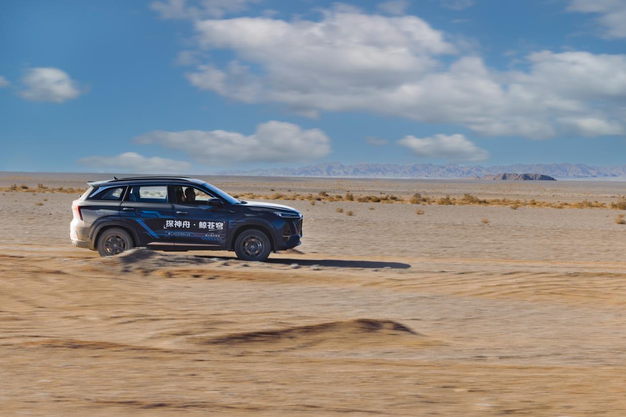 “極境挑戰(zhàn)”探秘中,CTCC冠軍車手張大勝與汽車自媒體達人張秋晨組成“敢當先鋒隊”,一同駕駛第二代CS75PLUS從金塔縣出發(fā),探尋神舟十三的降落軌跡。