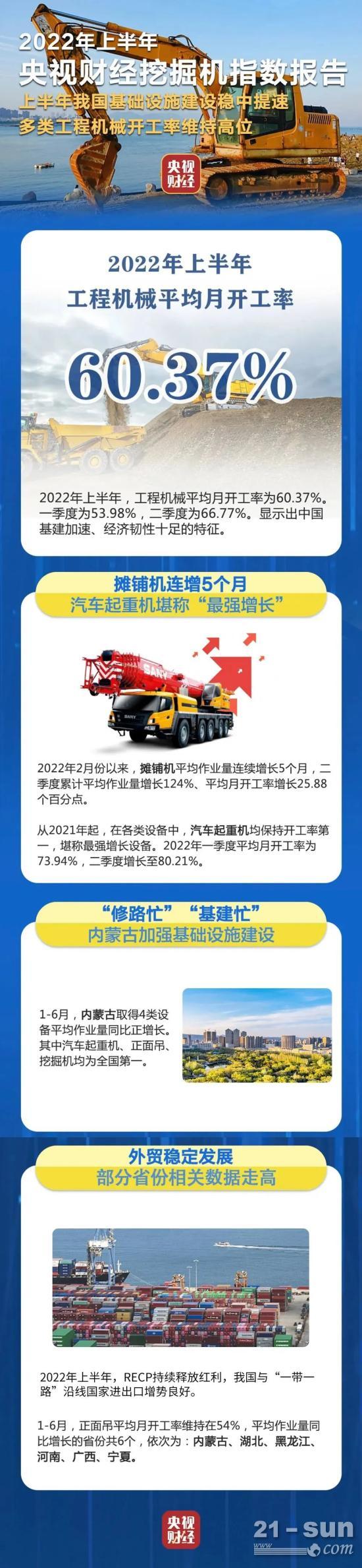 2022年上半年工程機(jī)械平均月開(kāi)工率為60.37%,二季度為66.77%,明顯高于一季度53.98%。