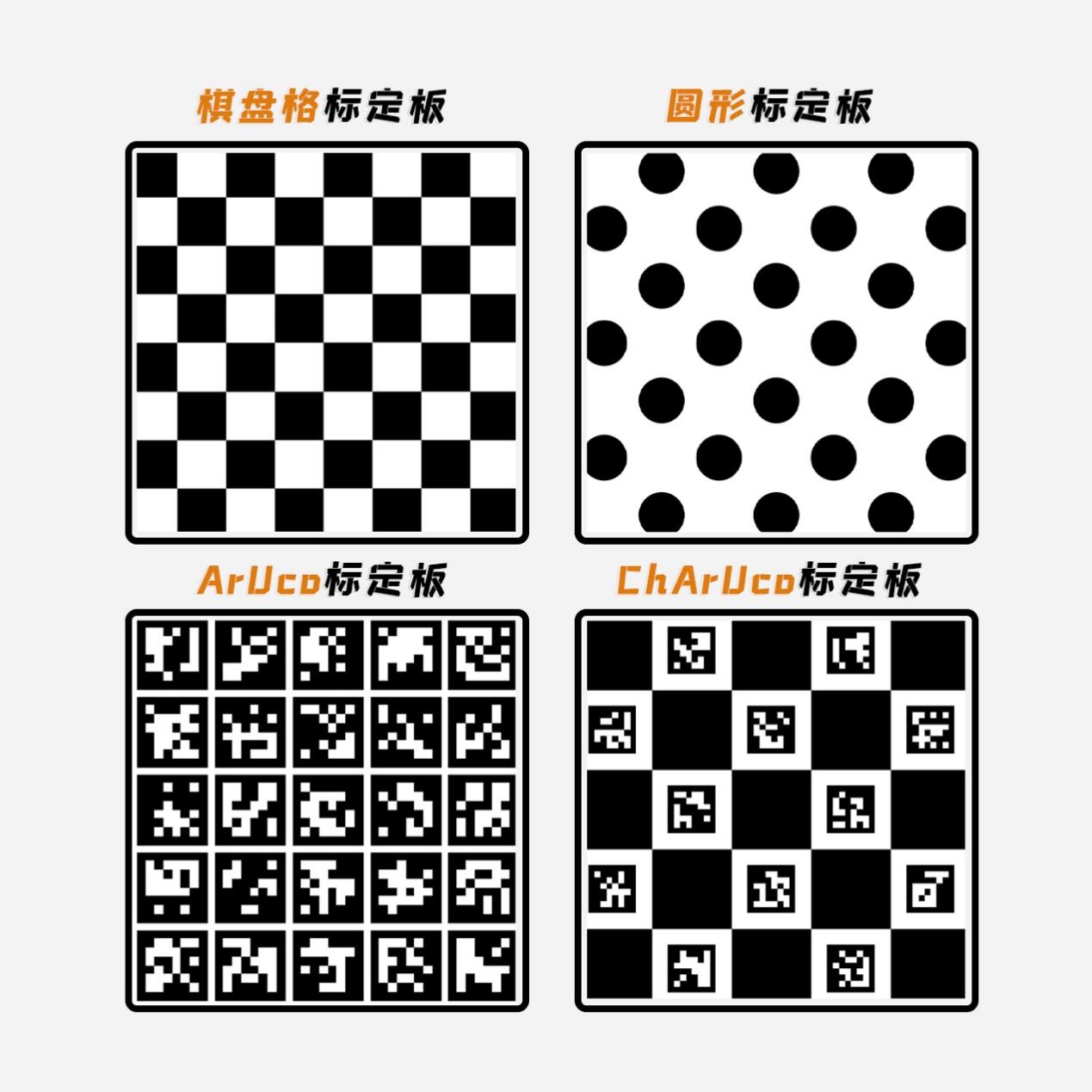 標定車間是一個高度定制化的場地,主要由標定標志物、標定平臺、照明設備組成。標定標志物目前主要指標定板,包括棋盤格標定板、ArUco標定板、圓形網(wǎng)格標定板、ChArUco標定板等。企業(yè)可根據(jù)采用的算法選擇不同類型的標定板,有些企業(yè)也采用屏幕顯示標定板的方式進行標定。