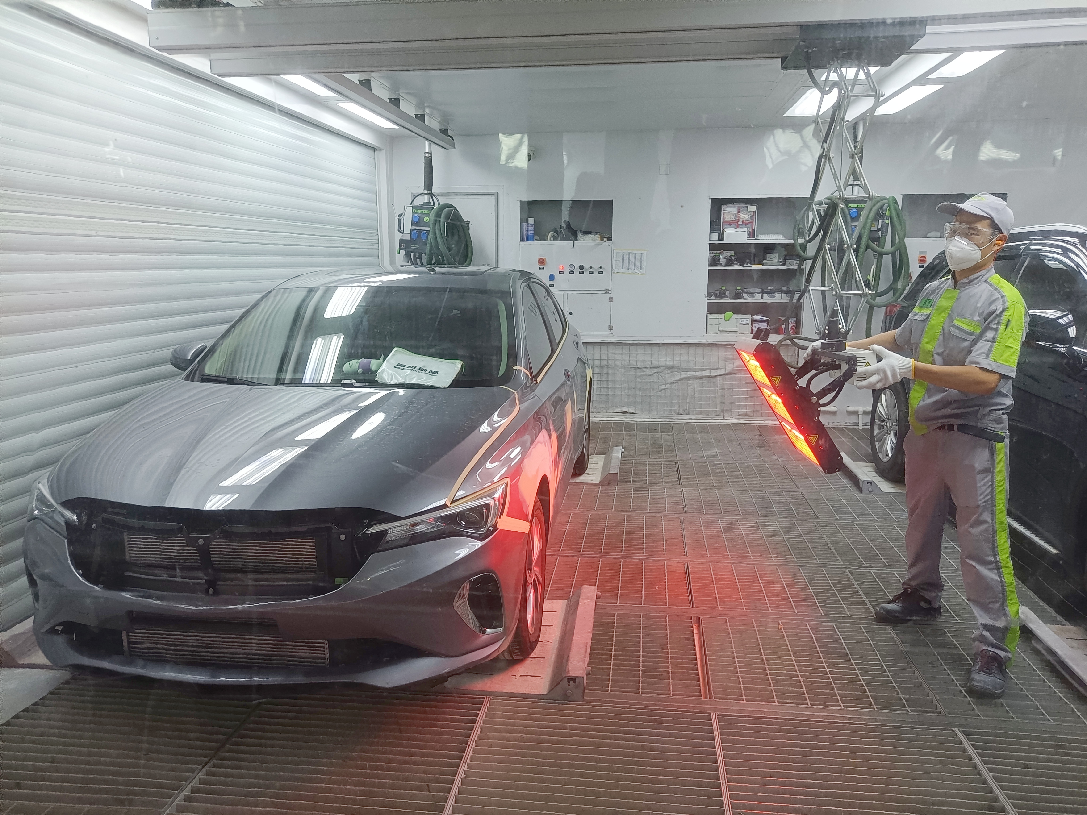 據(jù)介紹,得益于工藝技術(shù)革新和執(zhí)行先進(jìn)的行業(yè)技術(shù)工藝質(zhì)量標(biāo)準(zhǔn),青椒鈑噴在保證施工品質(zhì)的基礎(chǔ)上效率得到大幅提升,可節(jié)省約30%的作業(yè)時(shí)長。采用先進(jìn)的IRT的紅外線烤燈設(shè)備,反射率高于97%,整車烘烤只需約3~15分鐘,相較傳統(tǒng)烘烤工藝,效能提升80%以上。