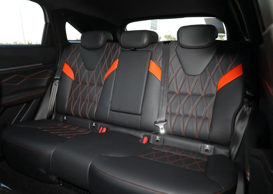內飾部分,整體的設計突出簡潔二字,配置方面也很豐富,首先是科技部分,新車采用了聯屏設計,懸浮式的造型很抓人眼球,突出高端的科技感,當然,新車也保留了一些物理按鍵,主要集中在方向盤上以及駕駛艙位置,方便駕駛員操作,整個中控采用環(huán)抱式設計,偏向于駕駛員一方,功能方面,新車支持語音交互,OTA升級等等。配色方面,門板處以及座椅上均加入了橙色線條點綴,和外觀相呼應,活躍了內飾的氛圍。