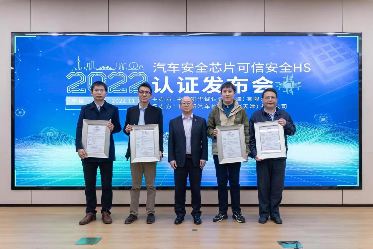 2022年11月17日,由天津檢驗中心聯(lián)合華誠認證舉辦的“汽車安全芯片可信安全HS認證證書發(fā)布會”在天津順利召開,會議同步進行線上直播,在線觀看人數(shù)超1w+人次,華誠認證總經(jīng)理張曉龍、天津檢驗中心副總經(jīng)理董長青、華大電子的產(chǎn)品總監(jiān)王延斌、信大捷安高級副總裁李鑫、國芯常務副總經(jīng)理艾方、上海芯鈦副總經(jīng)理李瀾濤出席本次活動。
