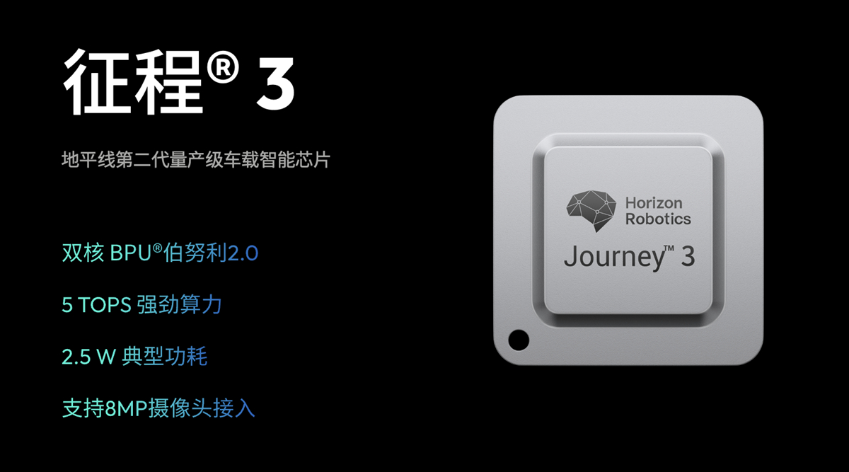針對(duì)10-25萬(wàn)定位于經(jīng)濟(jì)型的車型,基于征程3的性價(jià)比行泊一體域控方案則是平衡量產(chǎn)效率與成本的雙優(yōu)選擇。征程3基于地平線自研的計(jì)算加速引擎BPU®伯努利架構(gòu)打造,單芯片可提供5TOPS算力,典型功耗僅2.5瓦。目前,地平線已助力生態(tài)伙伴打造多類基于征程3的量產(chǎn)級(jí)行泊一體域控方案,包括單顆征程3、兩顆征程3、單顆征程3+第三方SoC以及三顆征程3等多種“豐儉由人”的算力方案,同時(shí)提供滿足被動(dòng)散熱要求的系統(tǒng)配置,全面滿足不同價(jià)位、不同動(dòng)力車型的量產(chǎn)裝配需求。