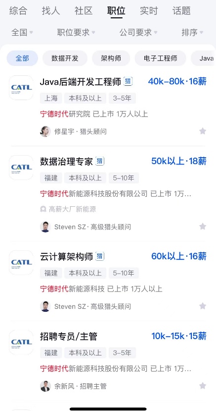 (寧德時代、國軒高科在脈脈發(fā)布的崗位招聘信息)