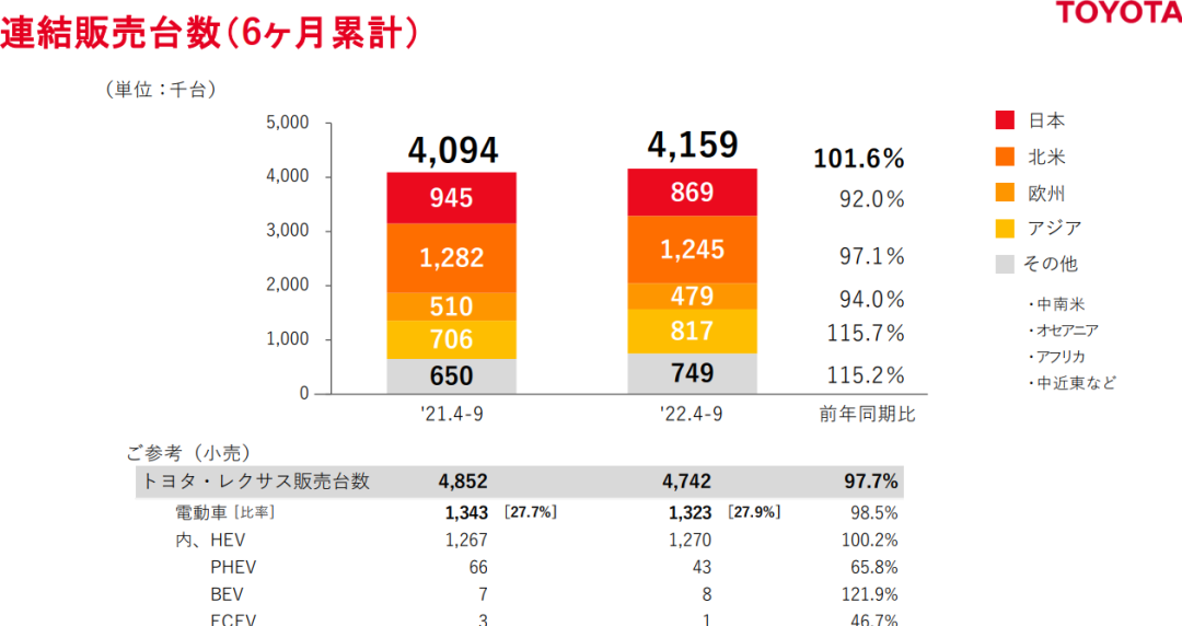 在豐田一味押注氫能的同時(shí),電動(dòng)化浪潮席卷全球,純電成為主流路線。曾經(jīng)體量不起眼的特斯拉在短短數(shù)年內(nèi)快速崛起,中國(guó)、歐洲電動(dòng)汽車市場(chǎng)發(fā)展迅猛。正如一位豐田高管所言:“其他企業(yè)純電動(dòng)車型的銷量超出了豐田的預(yù)期。”2022年,特斯拉電動(dòng)汽車銷量超過130萬輛,且預(yù)計(jì)2023年可能達(dá)到200萬輛。比亞迪2022年電動(dòng)汽車銷量超過180萬輛,2023年沖擊400萬輛。相比之下,電動(dòng)汽車對(duì)于豐田的銷量貢獻(xiàn)微不足道。以2022年4~9月為例,豐田汽車全球銷量為415.9萬輛,其中插混車銷量約為4.3萬輛,而純電動(dòng)車僅為8000輛。
