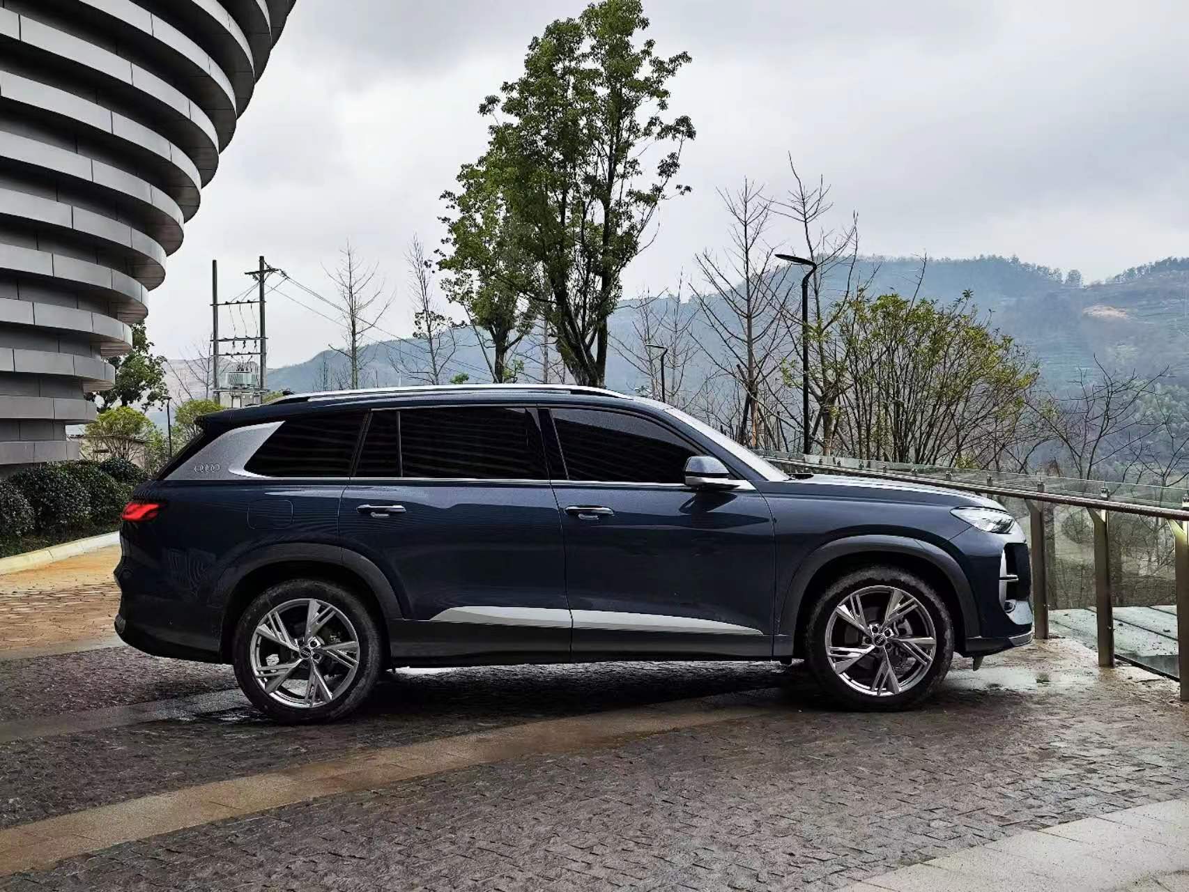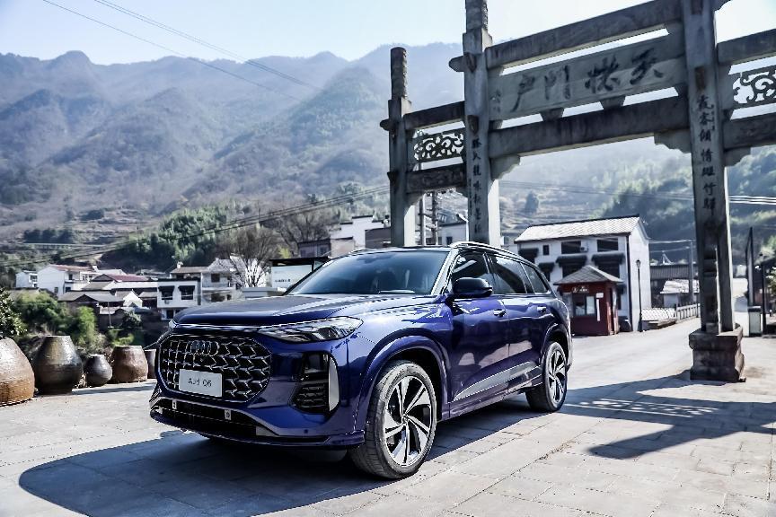 上汽奧迪Q6提供了兩種外觀設計風格,其中,羽林套裝采用大量鍍鉻裝飾條,沉穩(wěn)大氣;飛騎套裝前臉、后視鏡、車頂?shù)燃毠?jié)做熏黑處理,整體更運動時尚。整體來看,Q6大面積八邊形中網(wǎng)格柵搭配垂直的側進氣格柵勾勒出硬朗的整車前臉,外后視鏡延展于前蓋的側邊線條,從視覺上延伸了前臉和發(fā)動機蓋的長度和寬度,車身腰線在刀鋒造型的D柱收尾,這一設計使得5099*2014*1784mm的龐大車身、2980mm的長軸距看起來并不臃腫。在浙江新昌縣天姥山蜿蜒崎嶇的山路上,上汽奧迪Q6實際操控感受也頗為靈活,駕駛感覺偏向城市SUV。