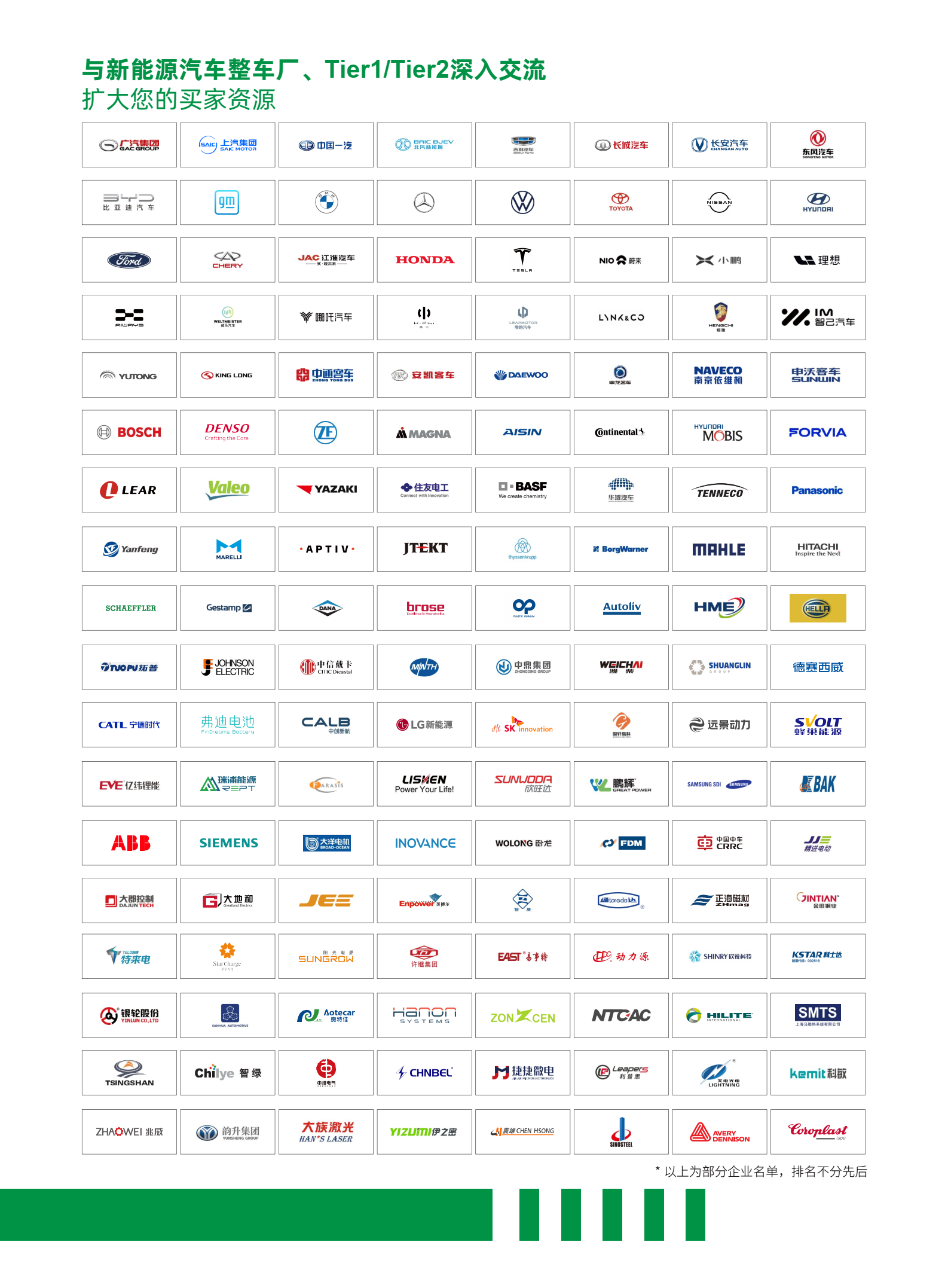 實踐證明,展會面對面交流的洽談方式更深入人心,不可取代。展會歷經(jīng)多年打磨,已積累來自新能源汽車主機廠、零部件供應商、相關配套產(chǎn)品等領域的高質(zhì)量買家群,以硬核實力打造展會品質(zhì)。
