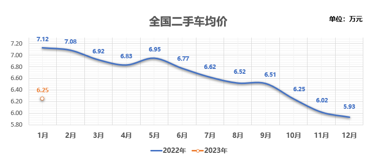 2023年1月二手車交易均價(jià)有所回升,環(huán)比12月份增長(zhǎng)0.32萬(wàn)元,下降了0.87萬(wàn)元。2月份市場(chǎng)逐步收緊,加上貨源緊缺,收車成本增加,協(xié)會(huì)預(yù)計(jì)2月份二手車交易均價(jià)還會(huì)持續(xù)回升。