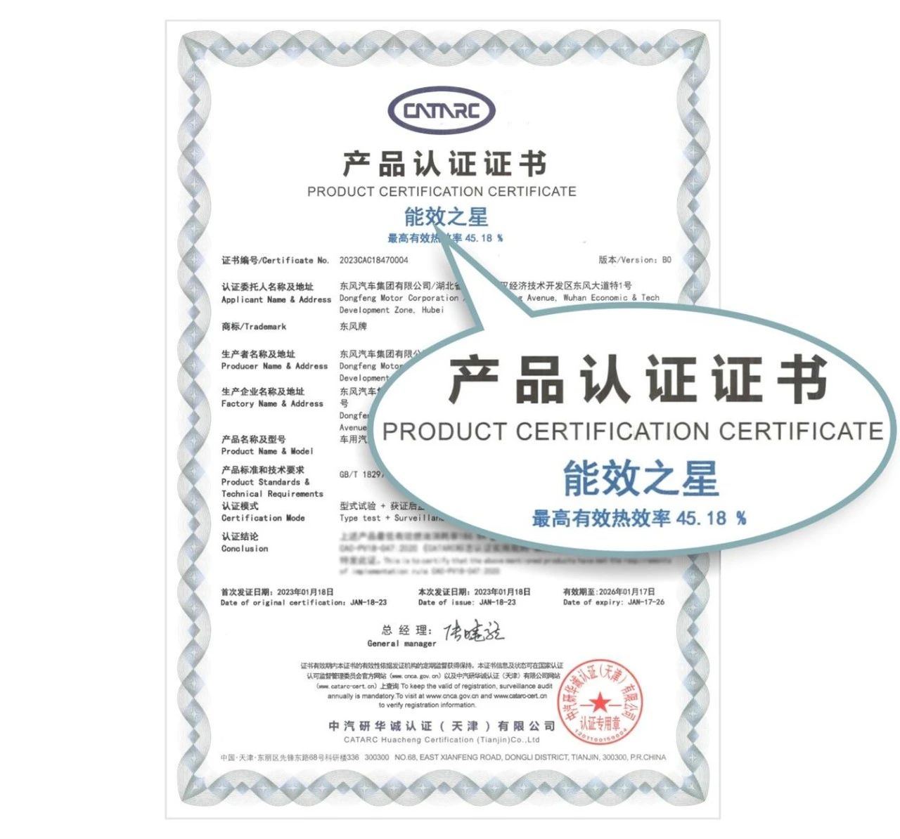 據(jù)了解,早在2020年,東風(fēng)馬赫1.5T發(fā)動機,就以41.07%的最高有效熱效率,成為國內(nèi)首款熱效率超過41%的增壓機型。今年2月7日,東風(fēng)全新馬赫1.5T混動發(fā)動機獲得中汽研華誠認(rèn)證的“能效之星”權(quán)威認(rèn)證,成為中國汽車行業(yè)首款熱效率認(rèn)證超越45%的混動汽油機。