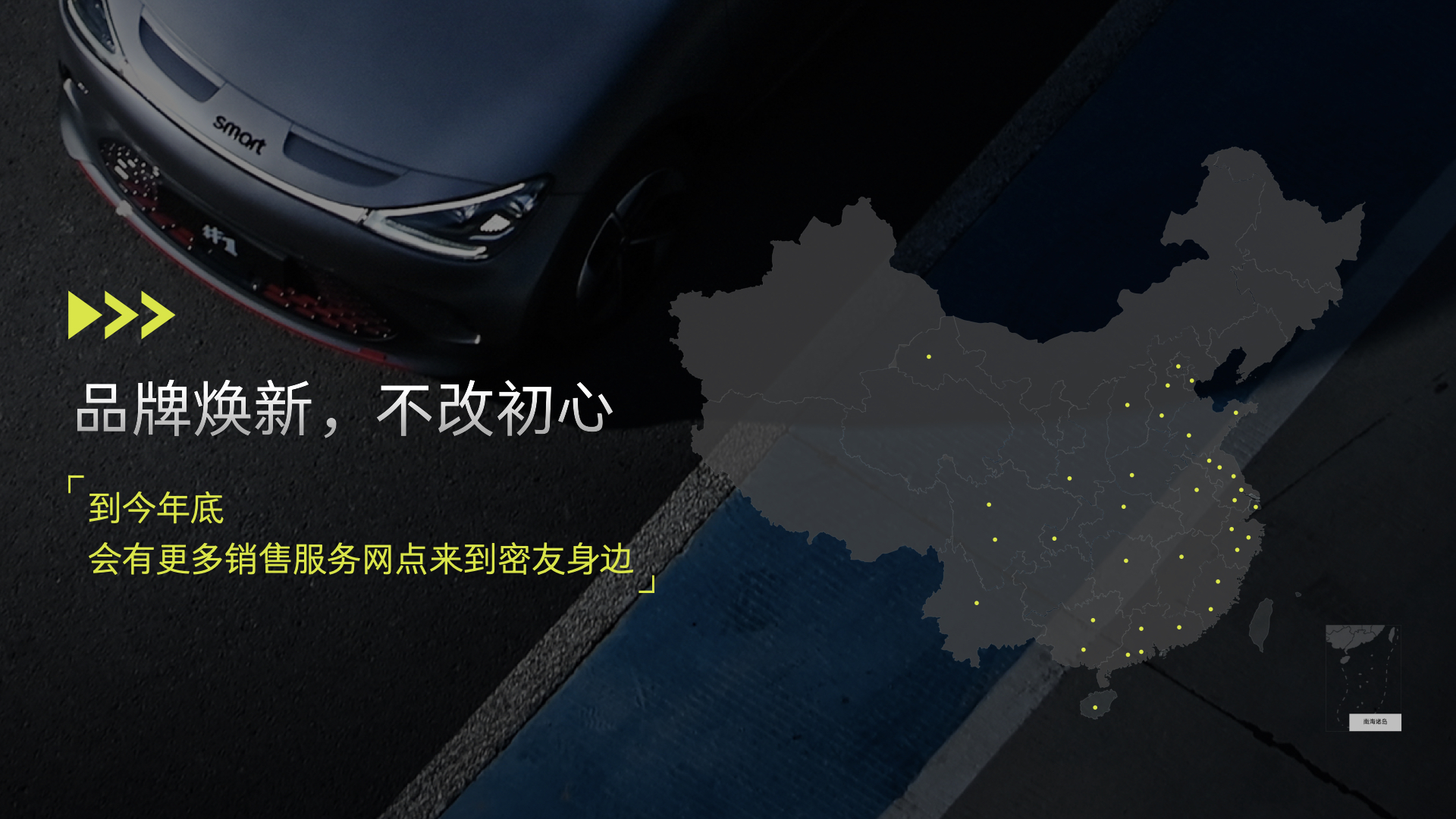 秉持“用戶中心,數(shù)字驅(qū)動”核心運(yùn)營理念,smart正快速推進(jìn)D2C直銷代理商業(yè)網(wǎng)絡(luò)建設(shè),并不斷加快交付流程。目前,smart品牌在華已完成154家線下渠道網(wǎng)點(diǎn)建設(shè),覆蓋超過40座城市。2023年,smart將繼續(xù)擴(kuò)大在華銷售、服務(wù)渠道覆蓋范圍。預(yù)計(jì)今年底,smart全國渠道布局累計(jì)將超200家,覆蓋60余座全國一線、新一線及二線城市。
