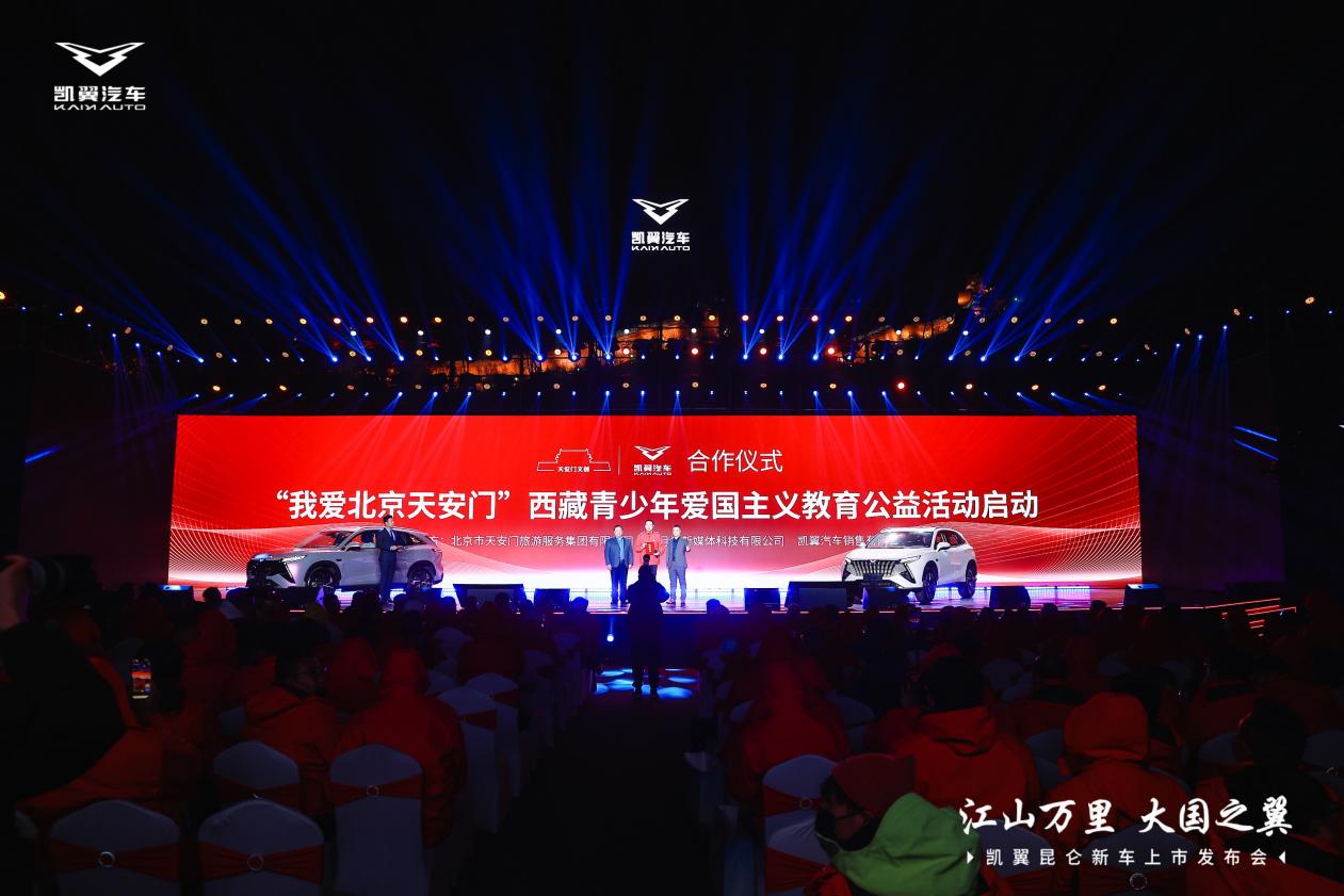 發(fā)布會(huì)現(xiàn)場(chǎng),在大家共同見證下,凱翼汽車與天安門旅游集團(tuán)、新華社半月談新媒體中心等共同發(fā)起“我愛北京天安門”西藏青少年愛國主義教育公益活動(dòng),并舉行了用戶品牌“Yi家人”啟動(dòng)儀式。凱翼汽車見義勇為的英雄車主段鴻作為凱翼公益大使,接受了凱翼銷售有限公司何勇平頒發(fā)的“凱翼公益大使”證書。