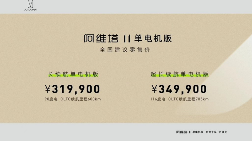 阿維塔11,是由長安汽車、華為、寧德時(shí)代共同打造的全新一代智能電動(dòng)汽車技術(shù)平臺(tái)CHN的第一款車型,從首次發(fā)布亮相就獲得了極高的熱度。繼雙電機(jī)版后,單電機(jī)版也終于迎來上市。