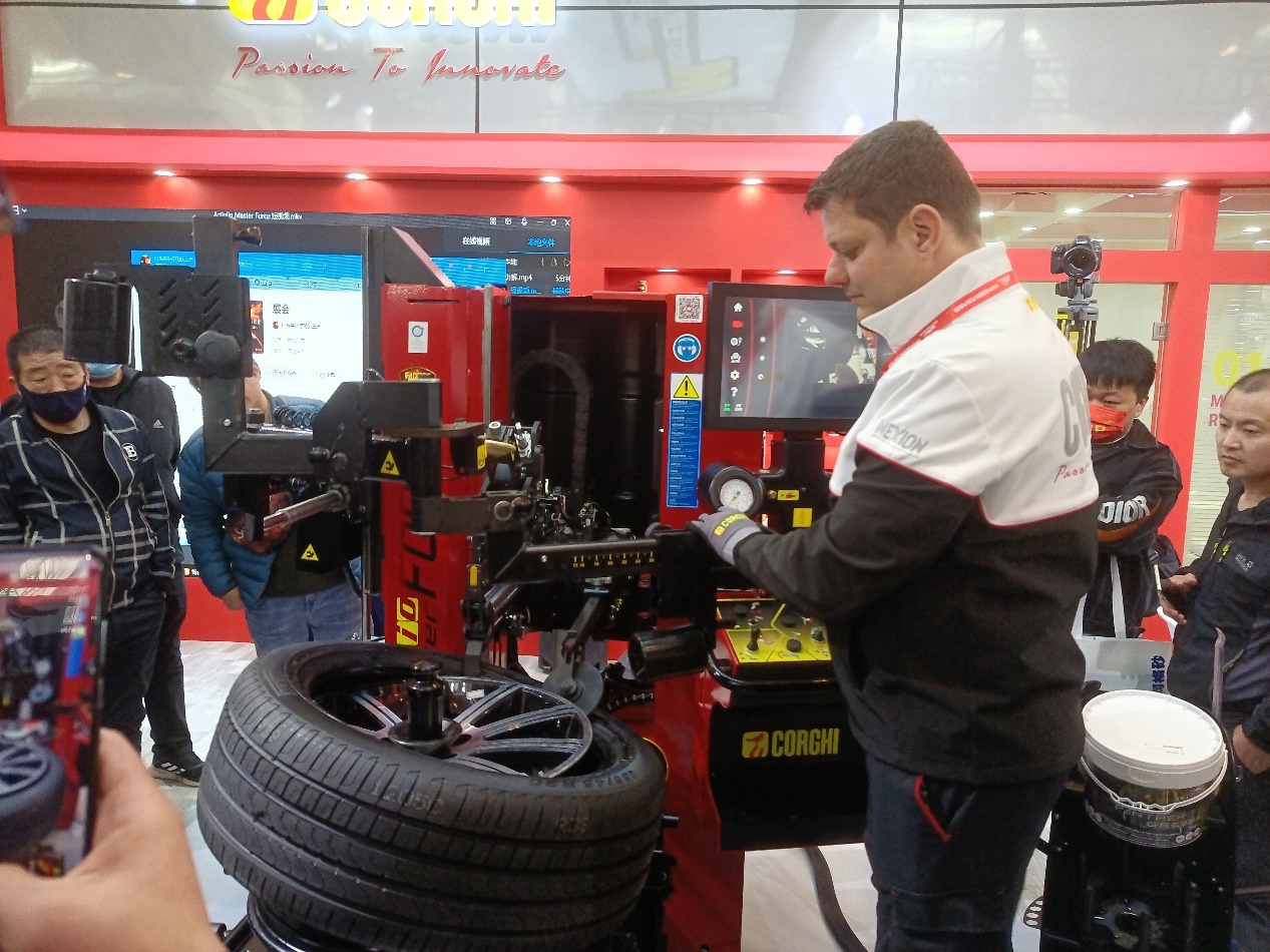 在S9號館的路特利舉升機(jī)展臺前,一位模特正在給過來咨詢的客商演示扒胎機(jī)的操作方式。路特利舉升機(jī)(海門)有限公司銷售總監(jiān)張德福告訴記者,這位模特其實(shí)在前一天才學(xué)會使用扒胎機(jī),而且學(xué)習(xí)時(shí)間僅一個(gè)小時(shí)。由于自動化程度高,路特利可以減少對人工的依賴,相當(dāng)于幫助客戶解決人員流動快、重新培訓(xùn)時(shí)間長、無法熟練操作造成安全風(fēng)險(xiǎn)的問題。