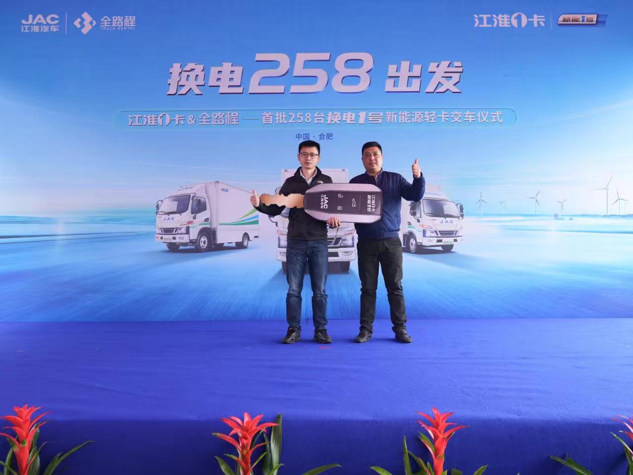 江淮1卡將“換電1號”車輛金鑰匙交付全路程集團