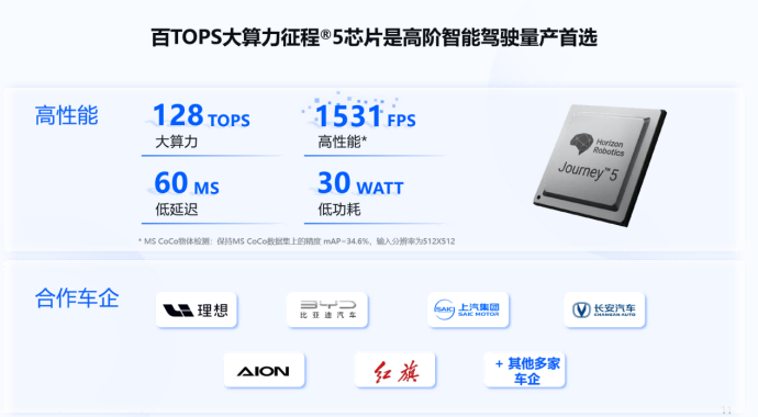 余凱介紹到:“目前,地平線已定點(diǎn)量產(chǎn) 50 多款車型,前裝定點(diǎn) 120 多款車型,車規(guī)級智能計算芯片出貨量近 300 萬片,征程 5 芯片成為業(yè)界唯二量產(chǎn)的超過100T算力的大算力芯片。一系列的標(biāo)桿車企、標(biāo)桿車型合作陸續(xù)實(shí)現(xiàn),10月官宣了與大眾集團(tuán)的重量級戰(zhàn)略級合作,11月開始交付搭載征程5的理想L8。”