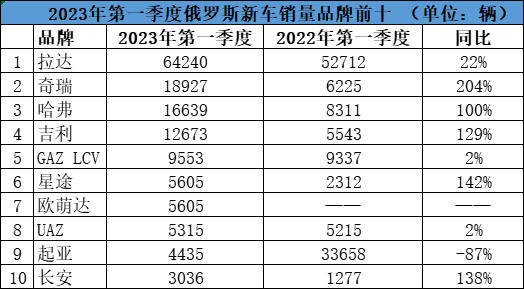 從過去一年情況來看,俄羅斯新車市場已經(jīng)縮水了一半以上,而歐美日韓等車企離去留下的市場空白,也被俄羅斯本土品牌和中國品牌所填補(bǔ)。今年第一季度,列入AEB統(tǒng)計(jì)的俄羅斯本土汽車品牌有四家,分別是拉達(dá)、GAZ LCV、UAZ和Sollers,合計(jì)銷量為79921輛,占比為52%,可以說是占據(jù)了俄羅斯車市的半壁江山。