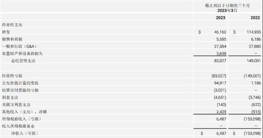 5月12日,法拉第未來(FaradayFuture,F(xiàn)F)公布2023年第一季度財報。財報顯示,截至2023年3月31日,F(xiàn)F第一季度經(jīng)營性支出為8302.7萬美元,而2022年同期為1.49億美元;凈收入為648.7萬美元,2022年同期凈虧損為1.53億美元。