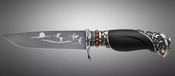 俄羅斯民間的能工巧匠居多,特別是俄羅斯當(dāng)?shù)氐牡督成瞄L(zhǎng)雕刻。他們喜歡在刀裝和刀身上做雕刻,同時(shí)又因?yàn)榕R近日本的關(guān)系,刀身鍛打和燒刃又極具日式風(fēng)格。下面是關(guān)于俄羅斯刀匠 葉夫根尼·索羅金的作品。
