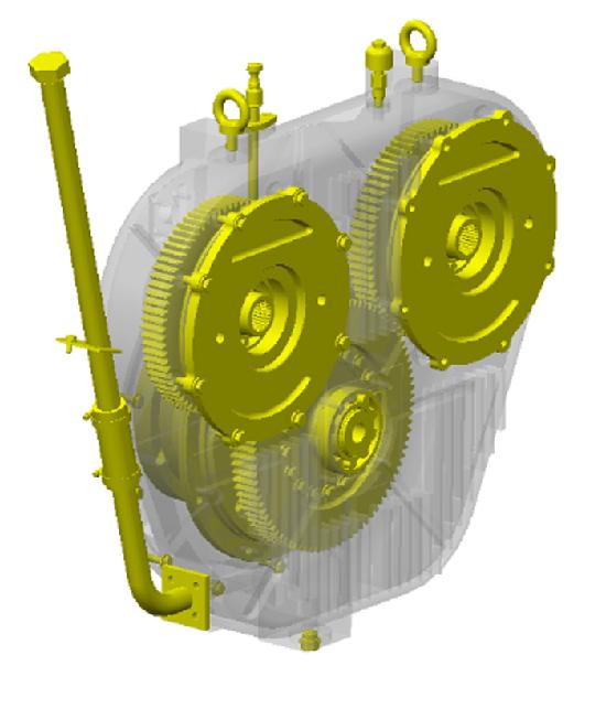 按照規(guī)定,該分動(dòng)箱可加注15~17L油潤(rùn)滑,油面恰好在油尺標(biāo)定范圍之內(nèi),此時(shí)油液剛好淹沒(méi)飛輪齒圈邊緣。若潤(rùn)滑油加注過(guò)多,在分動(dòng)箱內(nèi)部齒輪攪動(dòng)下,不僅會(huì)產(chǎn)生較大的功率損失,還可在很短的時(shí)間內(nèi)導(dǎo)致潤(rùn)滑油溫度急劇升高。
