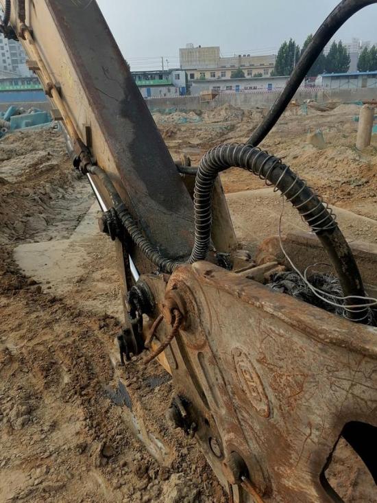 七,打開開關(guān),大約3秒左右就能做翻斗動作,可以看到快換接頭后部隨工字架上升,同時(shí)下壓大臂,到位之后再向上提大臂,這樣就能與炮錘分離。由于文章內(nèi)不能插入視頻,請到視頻中觀看。