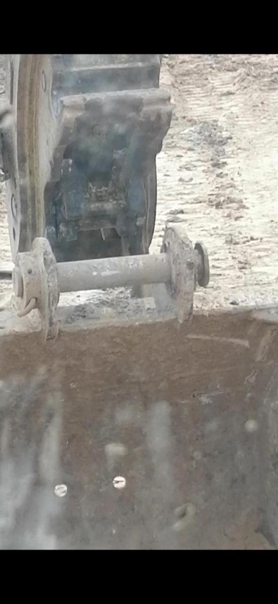 八,把挖機(jī)轉(zhuǎn)向挖斗,先把快換接頭前部開口部位卡在挖斗第一根軸上,然后做挖斗挖土動作,直到快換接頭后部與挖斗貼合,打開快換接頭開關(guān),大約3秒后快換接頭后部就能與挖斗第二根軸卡死,整個(gè)過程就完成了。如圖。需要注意的是一定要到挖斗那看看,檢查一下是否固定穩(wěn)定。請到視頻中觀看過程。