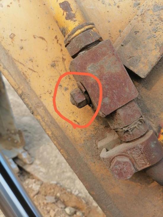 三,炮錘上有一根進(jìn)油管和一根回油管,每根油管上各有一個(gè)截止閥,如圖紅線內(nèi)的就是。用扳手?jǐn)Q上面的螺絲帽順時(shí)針方向旋轉(zhuǎn)九十度即可關(guān)閉截止閥。