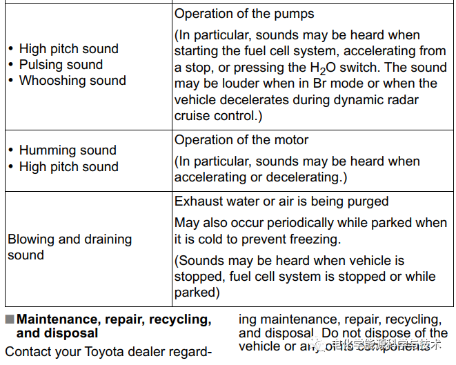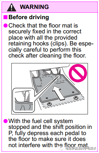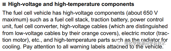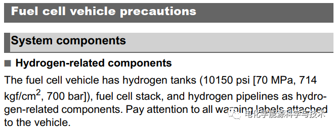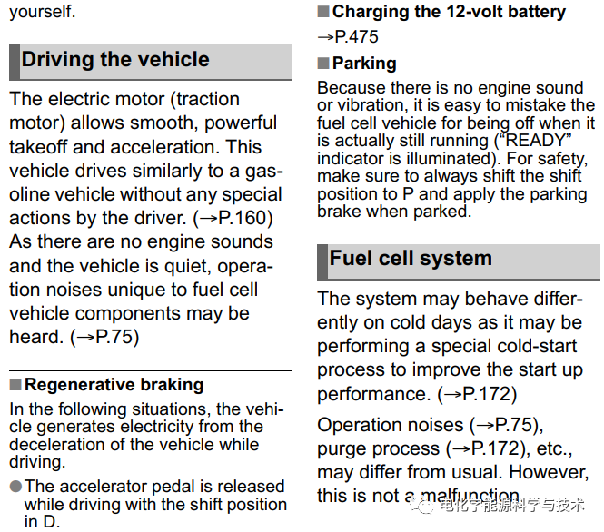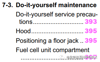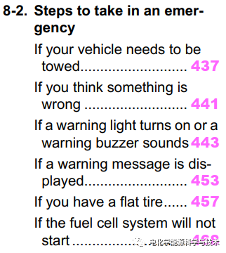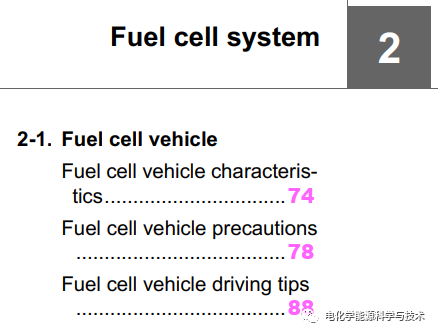 mirai 2021款用戶手冊的目錄中四次提及燃料電池,分別是: