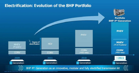 這張圖片可以看出ZF 8AT從第一代到最新一代的所做的改變。
