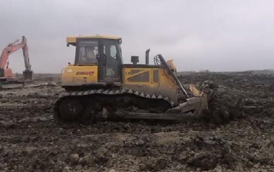 在泥濘地段推土?xí)r,機(jī)器容易陷落,因此每鏟推土量不可過大,行駛途中盡量避免停歇、換擋、轉(zhuǎn)向和制動(dòng),必要時(shí)用Ⅱ擋推土。