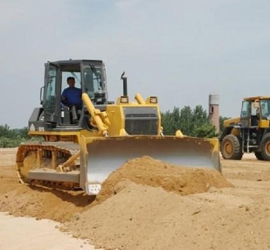 若遇履帶打滑,可適當(dāng)提升鏟刀減少推土量,若推土機(jī)仍不能前進(jìn),則可掛倒擋后退。此時(shí)不要提起鏟刀,以免推土機(jī)前部受力過大而前傾,致使履帶前部下沉,后部翹起。此時(shí)也不可轉(zhuǎn)向,以防一側(cè)履帶受力過大而加劇陷車。一旦陷車不可頻繁加大油門自救,以防推土機(jī)越陷越深。