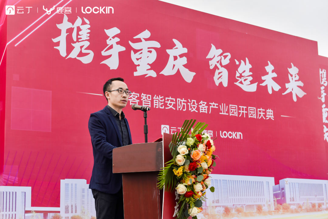 創(chuàng)始人陳彬在鹿客重慶智能安防設(shè)備產(chǎn)業(yè)園開(kāi)園上發(fā)表演講