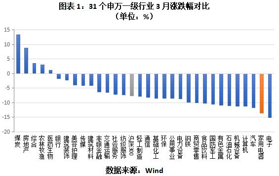 從細(xì)分行業(yè)來(lái)看,家用電器下屬的申萬(wàn)二級(jí)行業(yè)均呈下跌趨勢(shì),只有黑色家電(申萬(wàn)二級(jí))指數(shù)跑贏滬深300指數(shù),3月跌幅為5.37%;而廚衛(wèi)家電(申萬(wàn)二級(jí) )指數(shù)跌幅最大,3月下跌10.05%。
