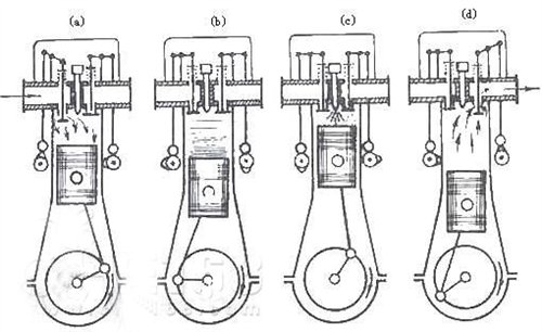 c作功沖程:活塞從上止點運動到下止點的過程叫作功沖程(曲軸旋轉(zhuǎn)角度360°~540°),該沖程進排氣門全關閉,活塞在上止點位置時火花塞跳火點燃油氣混合氣使氣缸內(nèi)的壓力急劇升高(可達到3~5MPa),推動活塞作向曲軸的運動,壓力逐漸下降,作功沖程終了氣室內(nèi)壓力約為0.3~0.5MPa。