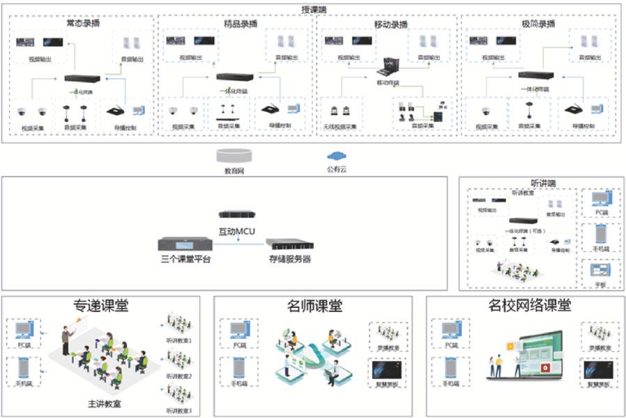 大華股份在如上打通產(chǎn)品鏈路的基礎(chǔ)上,推出了“三個(gè)課堂”解決方案,將專遞課堂、名師課堂、名校網(wǎng)絡(luò)課堂深入多種教學(xué)業(yè)務(wù)場(chǎng)景,通過錄播技術(shù),AI技術(shù),互聯(lián)網(wǎng)技術(shù),提供互動(dòng)教學(xué)、網(wǎng)絡(luò)教研、過程監(jiān)管等能力,實(shí)現(xiàn)優(yōu)質(zhì)教學(xué)資源共建共享。