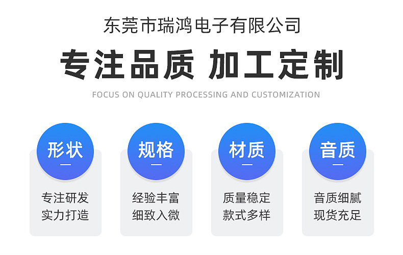 東莞市瑞鴻電子有限公司開發(fā)、生產(chǎn)、銷售揚(yáng)聲器,喇叭,音響喇叭,方型喇叭,蜂鳴器,麥克風(fēng),電腦喇叭,連接器等電聲產(chǎn)品