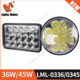 LED卡車大燈 貨車大燈原裝燈工程機(jī)械燈5寸圓5寸方 工作燈36W45W