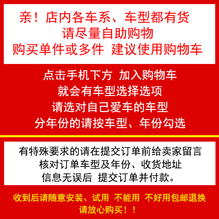 07-16款進(jìn)口指南者【22+20寸】,自由客【21+20英寸】不分年款,牧馬人【16+16英寸】不分年款,自由人【21+21英寸】不分年款,大切諾基【22+21英寸】不分年,新指南者17款【24+18英寸】國(guó),指揮官【18+18英寸】不分年款,自由俠【專用接口】不分年款,后刷【拍下留言車型+年份】,自由光【26+18英寸】不分年款