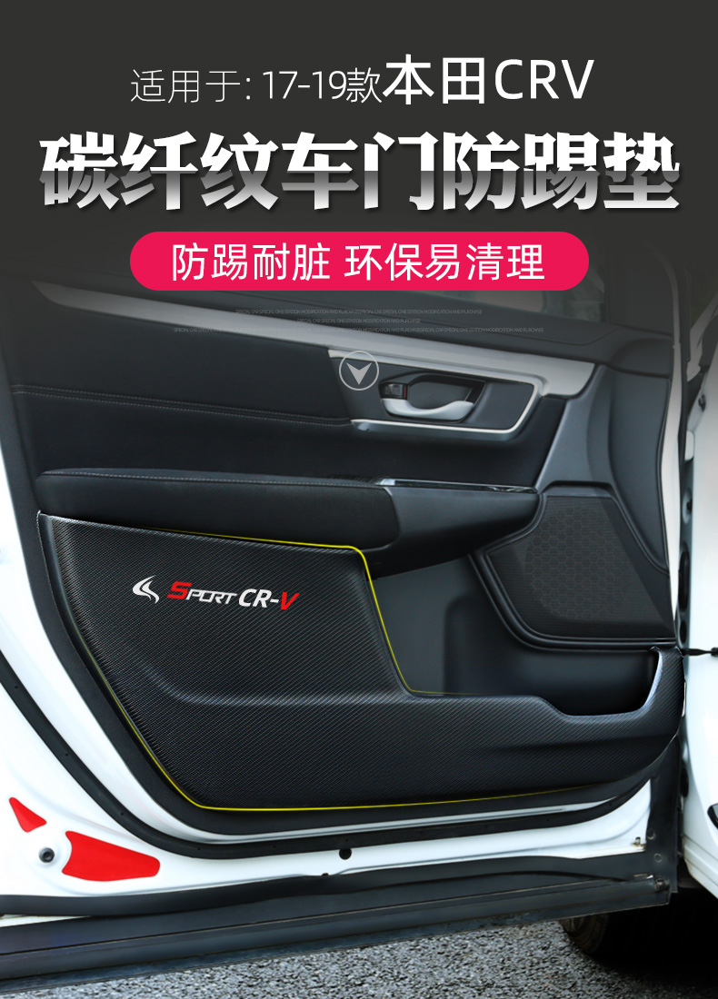 【碳纖紋皮革款/4件】車門防踢墊】-17-19款CRV專用