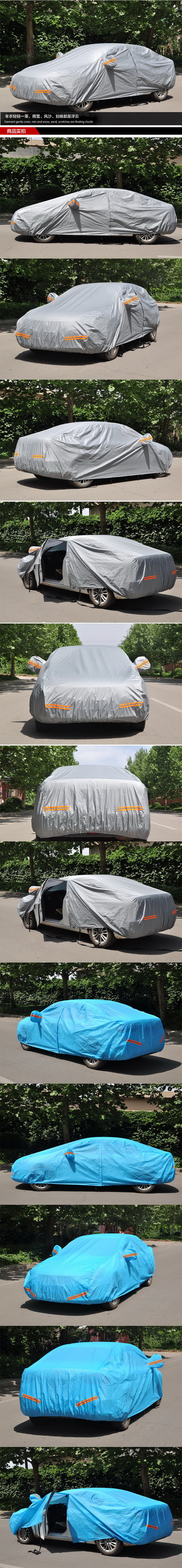 納米涂銀車衣190T,牛津加厚單層車衣210D,普通加棉車衣,PEVA加棉(帶反光條)車衣,杜邦加棉灰色車衣,杜邦加棉藍色車衣,鋁膜加棉車衣,牛津加棉車衣
