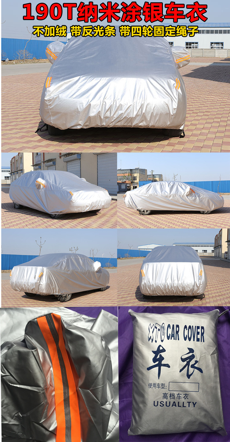 1、納米涂銀車衣 沒有反光條、密碼鎖。只有銀灰色