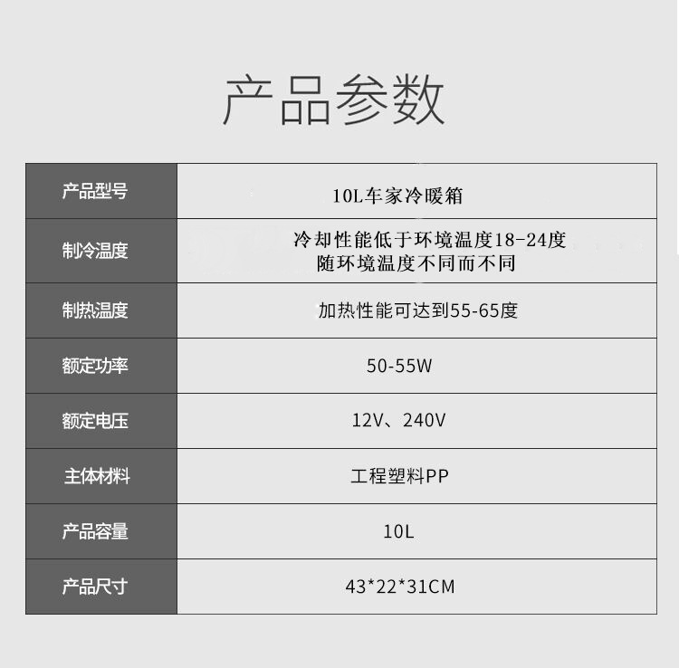 nfig="{"showOn":["mod-detail-description"],"title":"產(chǎn)品屬性"}" data-feature-json="[{"fid":100000729,"values":["否"],"name":"加工定制","id":100000729,"value":"否"},{"fid":1836,"values":["冷熱車載冰箱"],"name":"類型","id":1836,"value":"冷熱車載冰箱"},{"fid":2176,"values":["騰爵"],"name":"品牌","id":2176,"value":"騰爵"},{"fid":2553,"values":["轎車,貨車"],"name":"適用車型","id":2553,"value":"轎車,貨車"},{"fid":3572,"unit":"Kg","values":["4.2"],"name":"重量","id":3572,"value":"4.2"},{"fid":2338,"unit":"L","values":["6-10L"],"name":"容積","id":2338,"value":"6-10L"},{"fid":723,"unit":"V","values":["12,24,220"],"name":"電源電壓","id":723,"value":"12,24,220"},{"fid":1134,"unit":"W","values":["55"],"name":"功率","id":1134,"value":"55"},{"fid":3894,"unit":"℃","values":["0"],"name":"最低制冷溫度","id":3894,"value":"0"},{"fid":3916,"unit":"℃","values":["60"],"name":"最高制熱溫度","id":3916,"value":"60"},{"fid":346,"values":["浙江寧波"],"name":"產(chǎn)地","id":346,"value":"浙江寧波"},{"fid":3216,"values":["10L單核數(shù)顯12V/24V220V","8L單核數(shù)顯12V/220V","12L雙核數(shù)顯12V/24V220V","15L雙核數(shù)顯12V/24V220V","19L雙核數(shù)顯12V/24V220V","28L雙核數(shù)顯12V/24V220V"],"name":"顏色","id":3216,"value":"10L單核數(shù)顯12V/24V220V,8L單核數(shù)顯12V/220V,12L雙核數(shù)顯12V/24V220V,15L雙核數(shù)顯12V/24V220V,19L雙核數(shù)顯12V/24V220V,28L雙核數(shù)顯12V/24V220V"},{"fid":182318189,"values":["ebay","亞馬遜","wish","速賣通","獨(dú)立站","LAZADA"],"name":"主要下游平臺","id":182318189,"value":"ebay,亞馬遜,wish,速賣通,獨(dú)立站,LAZADA"},{"fid":182282223,"values":["是"],"name":"是否跨境出口專供貨源","id":182282223,"value":"是"}]" ready-to-show="true" style="margin-bottom: 22px; position: relative; color: rgb(51, 51, 51); border-bottom: 1px solid rgb(229, 229, 229); border-image: initial; border-left: none; border-right: none; border-top: 0px; clear: both; zoom: 1; width: auto !important;">