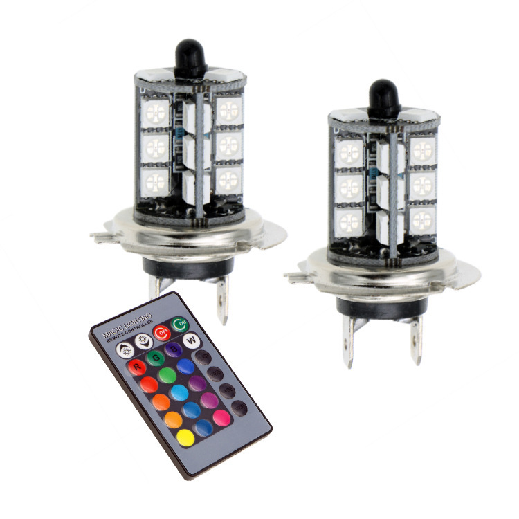 產(chǎn)品名稱:H1 H3 H4 9005 9006 H7 H8/H11 880 881 27LED遙控七彩霧燈RGB倒車燈5050 一對(duì)裝