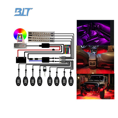 跨境直供藍牙雙遙控一拖12組合底盤燈&氛圍燈沙灘底盤汽車裝飾燈