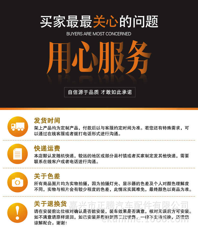 其他說明:我司專業(yè)經(jīng)營各種汽車配件的批發(fā)業(yè)務(wù),誠招線上線下 代理,一件代發(fā),15天包退換,質(zhì)保!我們是廠家直 營,主要從事批發(fā),不提供免費(fèi)安裝服務(wù),零售客戶請知 曉!