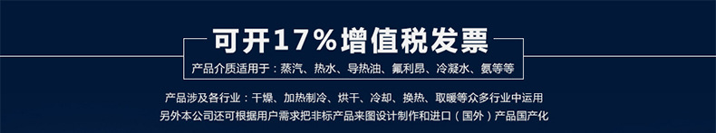 產(chǎn)品介質(zhì)適用于:蒸汽、熱水、導(dǎo)熱油、氟利昂、冷凝水、氨等等。