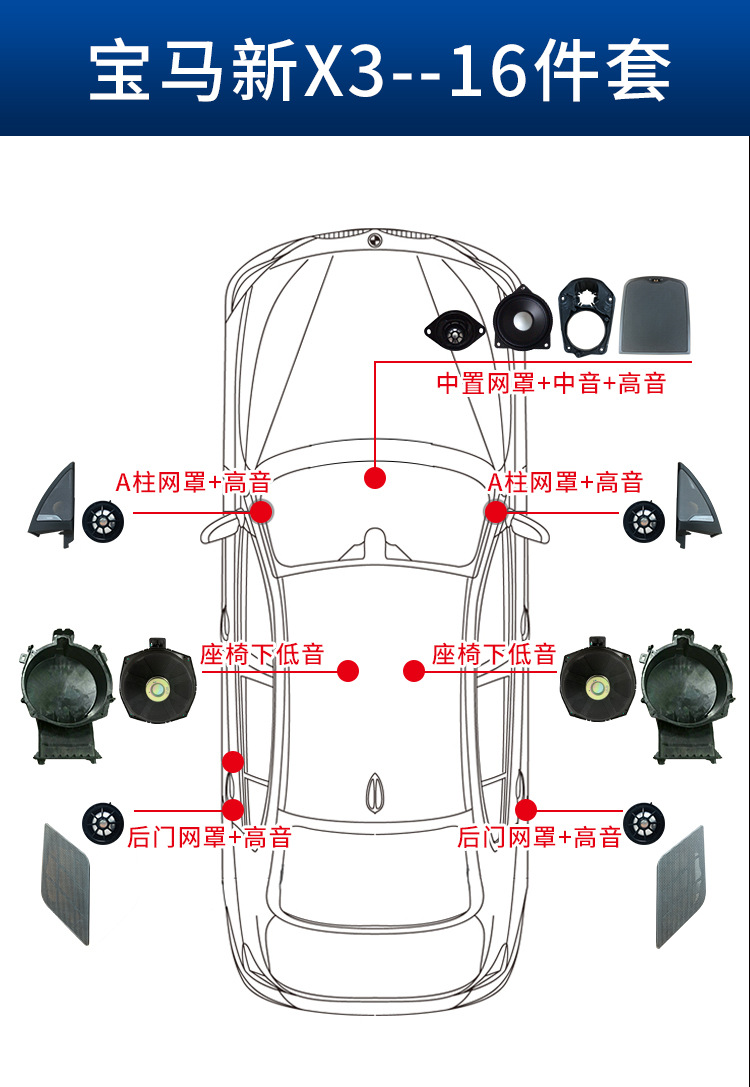 適用于寶馬新X3A柱高音中音低音喇叭 中控及后門蓋板罩子喇叭組合