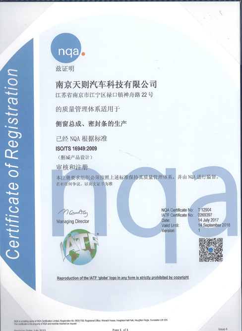 南京天則汽車科技有限公司創(chuàng)建于1998年,位于江蘇南京江寧空港國家級開發(fā)區(qū),交通便利,離機(jī)場5公里,離地鐵S1號線1公里。公司占地15000平方米,以生產(chǎn)大巴、輕客的車窗總成和密封條為主導(dǎo)產(chǎn)品,是一家集設(shè)計(jì)、研發(fā)、生產(chǎn)、銷售于一體的現(xiàn)代化企業(yè)。