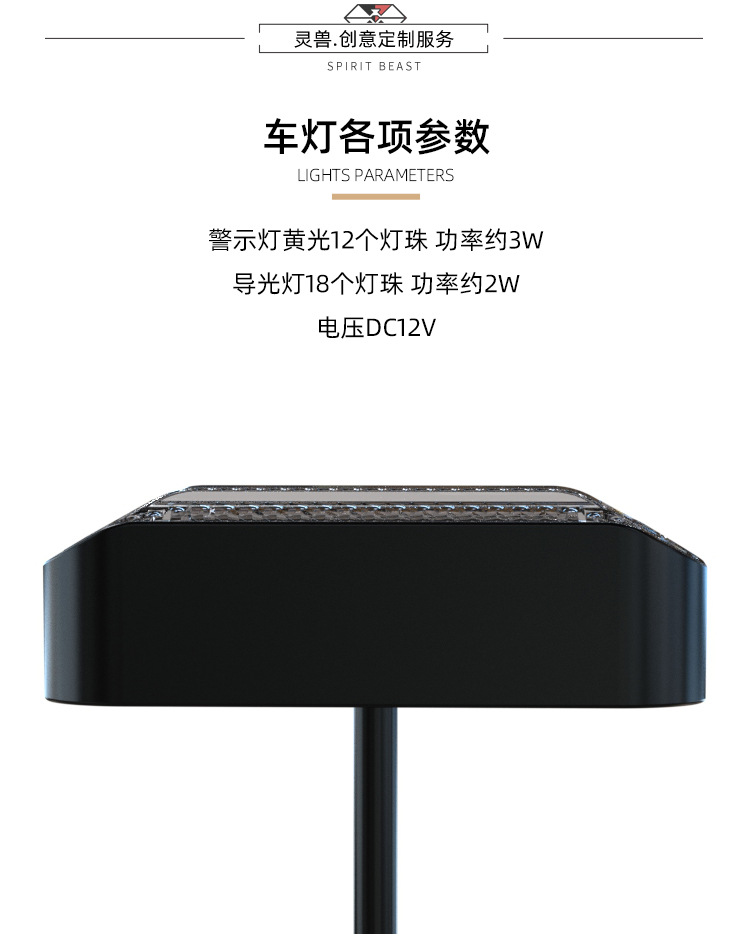 產(chǎn)品參數(shù):一只車(chē)燈的警示燈有12顆燈珠,約3W/日行燈有18顆燈珠,約2W/DC12V