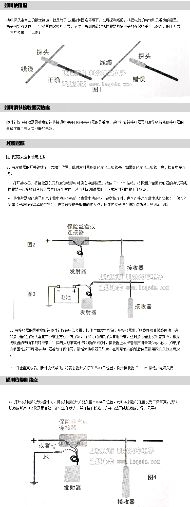 APPLICATION: Checking for short circuit,Locating open circuit,Wire identification, Wire tracing,etc.