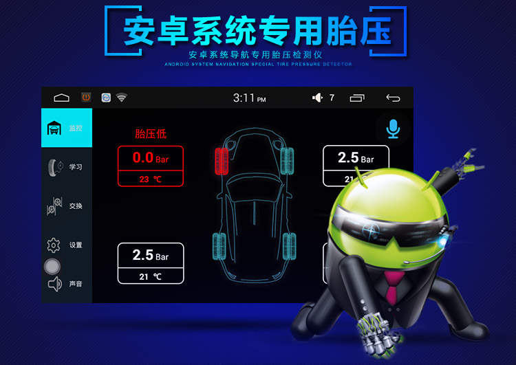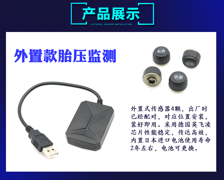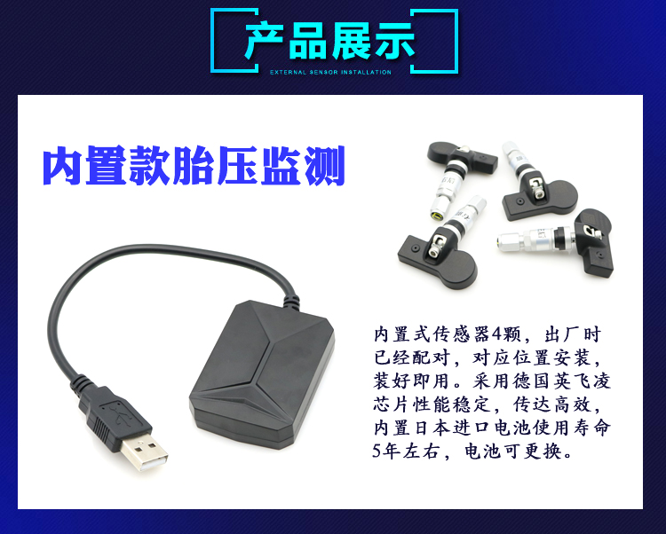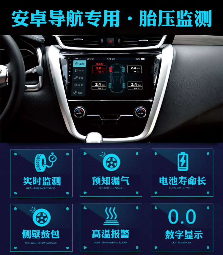 汽車胎壓監(jiān)測器內(nèi)置安卓USB大屏機導航顯示專用TPMS外置系統(tǒng)